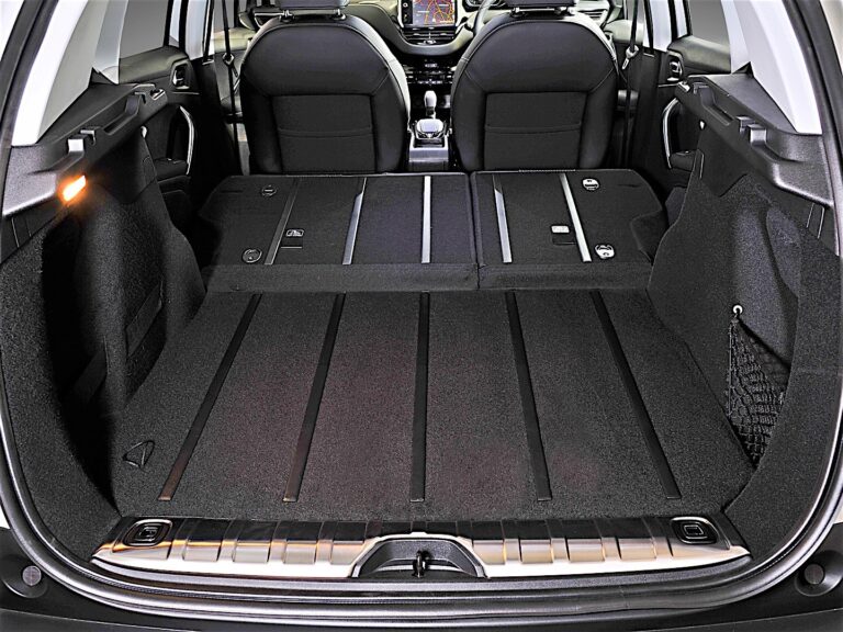 Z zewnątrz dostęp do dużego bagażnika jest równie łatwy, dzięki dużemu prostokątnemu otworowi i niskiemu progowi załadunkowemu, wynoszącemu zaledwie 60 cm, wykończonemu szczotkowanym stalowym zabezpieczeniem. Modułowa kanapa 1/3-2/3 pozwala zmieniać pojemność z 360 do 1194 dm3, z czego 22 dm3 znajduje się pod podłogą, jednym gestem. Wystarczy nacisnąć przycisk na górze tylnego oparcia, aby złożyć oparcie siedzenia, a siedzisko automatycznie się cofa.