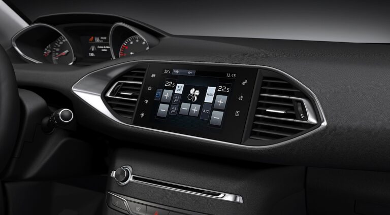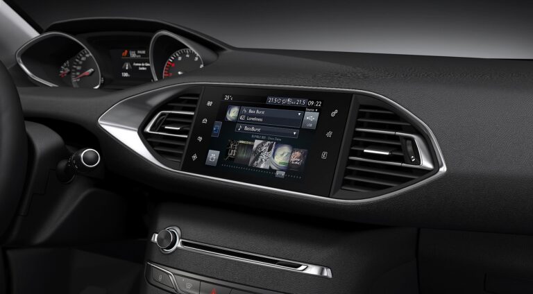 Najważniejszym punktem przestronnej kabiny Nowego 308 jest 9,7-calowy interfejs dotykowy, który zmniejsza potrzebę fizycznych przycisków i przełączników. Ustalając nowy standard rozmiaru w tej klasie, łączy wiele elementów sterujących infotainment w jednym miejscu, aby ułatwić użytkowanie i stworzyć nowoczesną, nieskaloną kabinę.