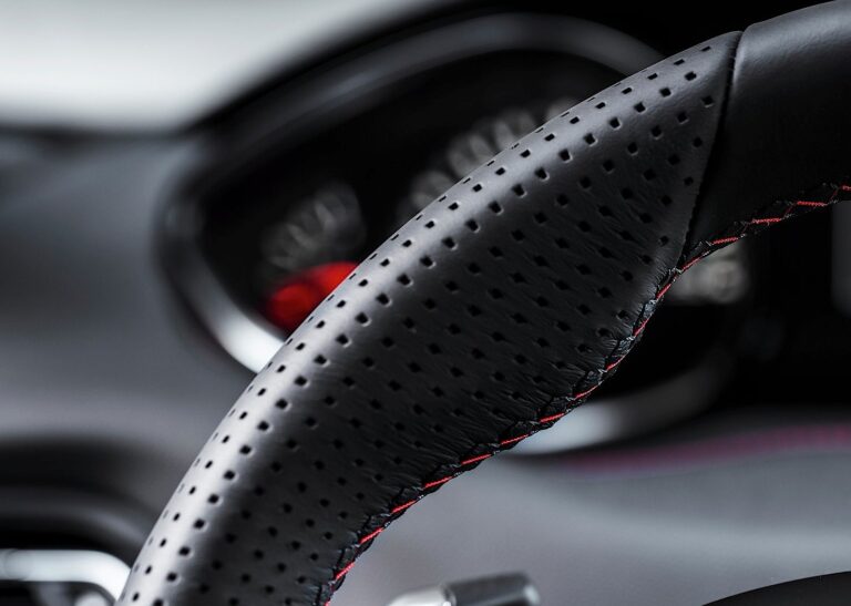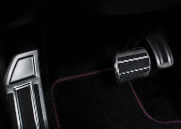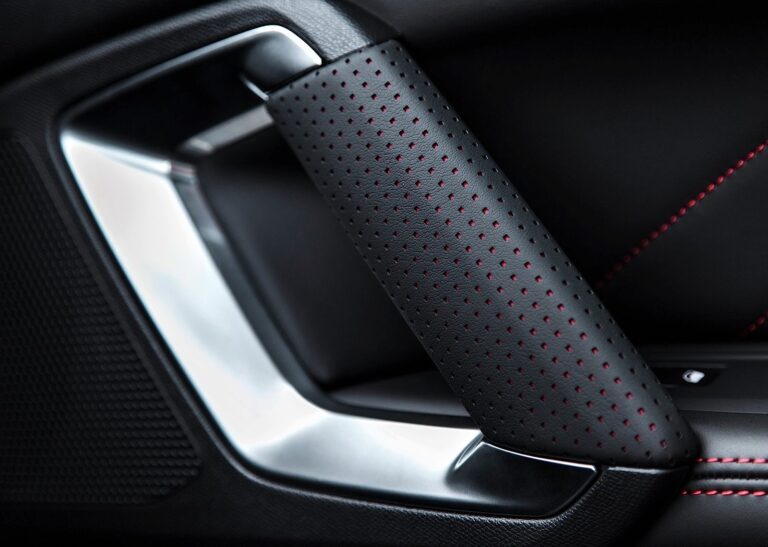 Ekskluzywna atmosfera została również osiągnięta wewnątrz kabiny. W oparciu o fundamenty sportowego wnętrza, zarówno podsufitka, jak i górne słupki okienne zostały wykończone w kolorze antracytowym, a czerwona nici akcentują wykończenia tapicerki oraz TEP/Alcantara w standardzie, lub skórę Club Nappa jako opcję. Czerwone nici występują również na desce rozdzielczej, panelach drzwi, pokrywie lewarka zmiany biegów i na dywanikach. Mechaniczny wymiar reprezentowany jest przez aluminium na pedałach i stal nierdzewną na wykończeniach progów w otworach drzwi.