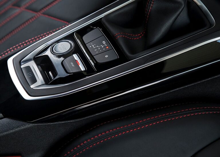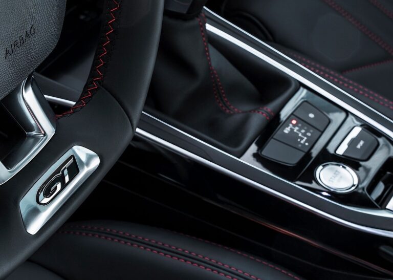 Kluczowym elementem w sportowym samochodzie, pozycja za kierownicą jest idealna dzięki ergonomii Peugeot i-Cockpit. Kierowca może dostosować wysokość i zasięg kompaktowej kierownicy, unikalnej dzięki perforowanej skórze i znaczku GT. W polu widzenia, panel instrumentów ma nowy motyw tła w wzór szachownicy. Po włączeniu zapłonu, kierowca witany jest komunikatem GT, a dużego ekran dotykowy wyświetla nową kolorystykę dominującą w czerwieni i czerni, zatytułowaną Redline.