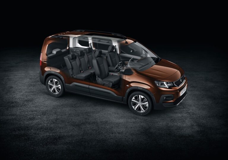Bagażnik Peugeota Rifter ma pojemność ładunkową od 775 litrów pod półką w wersji 5-osobowej o standardowej długości, do 4000 litrów pod sufitem w wersji długiej z opuszczonymi siedzeniami.