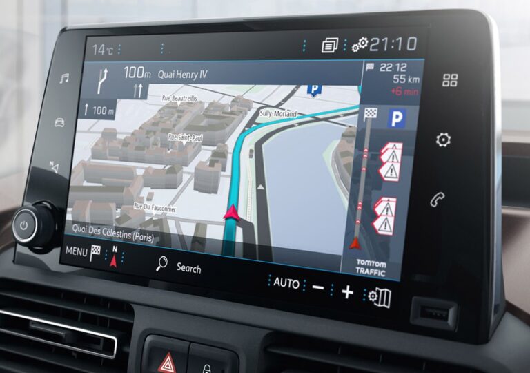 Połączona nawigacja 3D z poleceniem głosowym umożliwia intuicyjne wyszukiwanie punktów zainteresowania. Uwaga na warunki drogowe w czasie rzeczywistym (TomTom Traffic). Może wyświetlić parkingi, stacje benzynowe i lokalną pogodę.