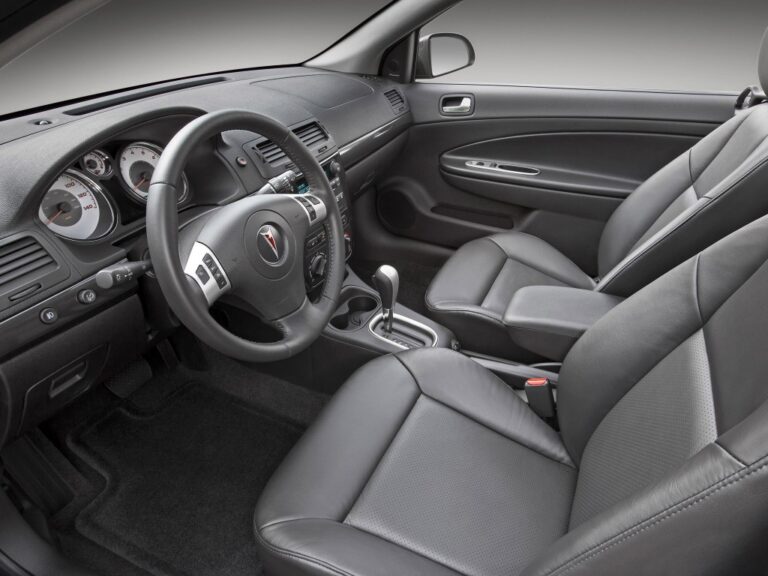 Wewnątrz producent zainstalował fotele kubełkowe z przodu, z dodatkowym wsparciem po bokach. G5 miał prostą, niemal nudną, konstrukcję deski rozdzielczej oraz kierownicę, która wyglądała jakby została przeniesiona z Opla/Vauxhalla i opatrzona logo Pontiac. Producent umieścił białe wskaźniki dla prędkościomierza i obrotomierza oraz wskaźnik paliwa na górze panelu instrumentów.