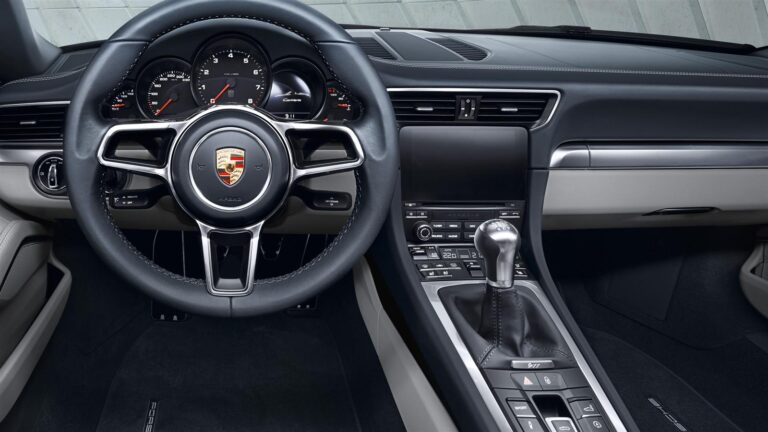 Standardowym wyposażeniem nowych modeli 911 Carrera jest nowo opracowany system zarządzania komunikacją Porsche (PCM) z modułem nawigacji online i sterowaniem głosowym. PCM można obsługiwać za pomocą gestów multi-touch na siedmiocalowym wyświetlaczu, podobnie jak w przypadku smartfona. Możliwe są także wpisy użytkownika w postaci odręcznego pisma. Telefony komórkowe i smartfony można teraz również łączyć przez Wi-Fi. Zintegrowany w po raz pierwszy w podłokietniku środkowym uchwyt na smartfona oferuje również oszczędzające baterie ładowanie oraz zoptymalizowaną jakość sygnału. Nowością jest także opcja podłączenia iPhone’a do PCM, aby korzystać z Apple CarPlay.