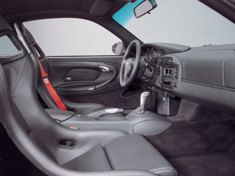 W środku samochód pozbawiono niemal wszystkiego, co nie było niezbędne. Zniknęły tylne fotele, klimatyzacja była opcjonalna, a jednostka multimedialna ograniczała się do radia. W wykończeniu wnętrza umieszczono elementy z włókna węglowego na konsoli centralnej, w panelu i na desce rozdzielczej. Fotele wyścigowe były sygnowane przez Recaro i miały dwa duże otwory na pasy wyścigowe. W przeciwieństwie do modelu GT3 RS, nie była wyposażona w klatkę bezpieczeństwa.