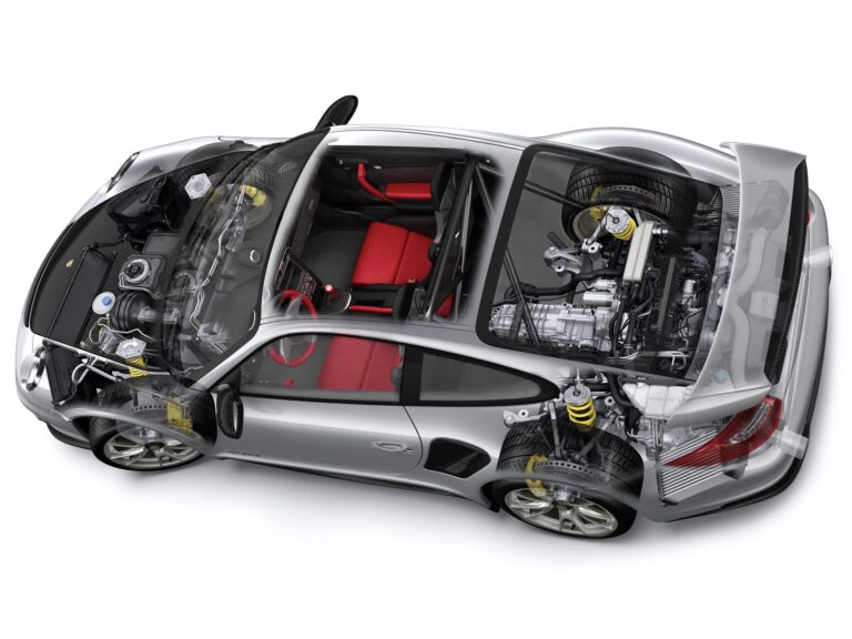 Jako charakterystyczny znak odróżniający od 911 GT2, dodatkowa, duża pokrywa bagażnika wykonana jest w całości z widocznego włókna węglowego, co wyraźnie podkreśla nie tylko sportowy wygląd samochodu, ale także redukuje wagę o około 2,5 kg lub 5,5 lb w porównaniu do już bardzo lekkiej aluminiowej pokrywy bagażnika w 911 GT2.