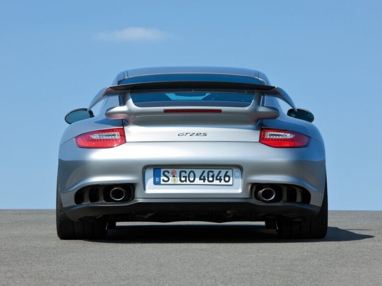 Środkowa sekcja z tyłu, jak również dolne tylne panele wokół rur wydechowych oraz otwory wylotowe na intercooler w nowym designie kratki są również wykonane z widocznego włókna węglowego w 911 GT2 RS. Tylny design samochodu dopełniają tylne światła z aktualnych modeli 911 w technologii LED: w przeciwieństwie do tylnych świateł w 911 GT2, nowe tylne światła w 911 GT2 RS mają zatem wyraźnie spiczasty kształt ku zewnątrz i są elegancko wkomponowane w tył samochodu, a wygląd LED dodatkowo podkreśla szerokość Porsche 911 GT2 RS oraz nadaje mu naprawdę dynamiczny wygląd w ciągu dnia, a zwłaszcza w nocy.