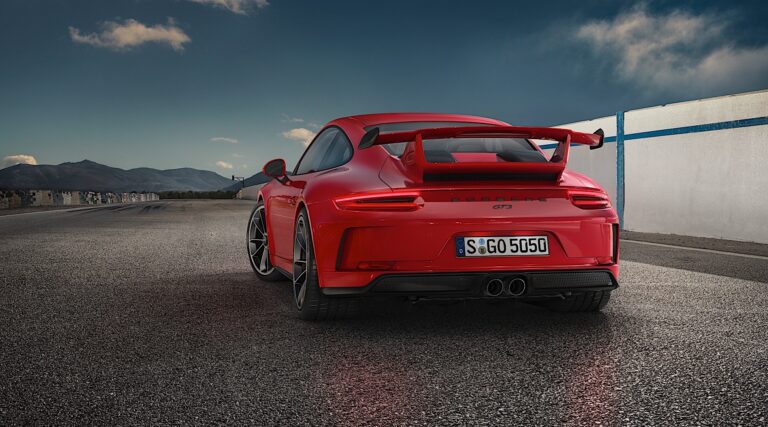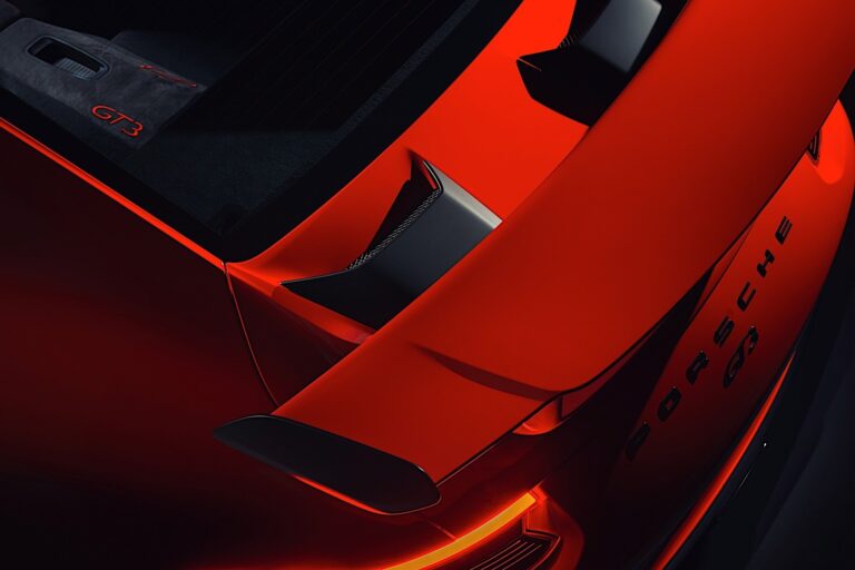 Jeśli chodzi o wygląd, 911 GT3 nie pozostawia wątpliwości co do swojego przeznaczenia. Dominujący tylni skrzydło z węgla podkreśla, że forma samochodu sportowego jest determinowana przez aerodynamikę. Lekki przód i spojler przedni zostały zoptymalizowane dla jeszcze lepszego przepływu powietrza. Aerodynamiczne udoskonalenie jest również widoczne na lekkim tylnym końcu z otworami odprowadzającymi powietrze oraz na nowym dyfuzorze.
