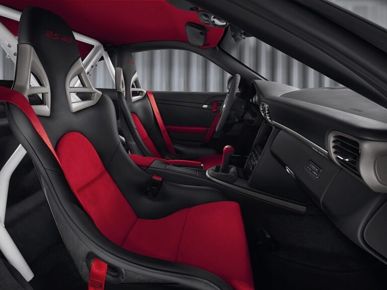 W połączeniu z pakietem Clubsport, lekkie kubełkowe fotele z włókna węglowego są obite czerną skórą, a w zależności od specyfikacji, środkowa część siedzenia jest w czerwonym lub czarnym Alcantarze. Napisy „RS 4.0” są wyszywane na zagłówkach. Oba fotele kubełkowe sportowe z składanym oparciem i sportowe fotele adaptacyjne są dostępne jako opcja w Porsche 911 GT3 RS 4.0 bez dodatkowych kosztów. Te opcjonalne fotele wyposażone są w poduszki powietrzne umiejscowione w bocznych podporach.
