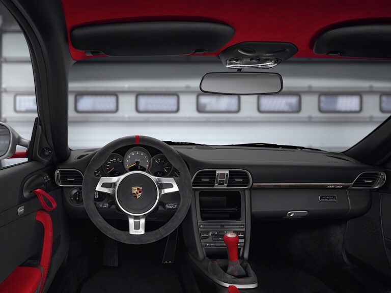 Wnętrze przystosowane do wyścigów z czerwonymi akcentami Alcantara doskonale odpowiada przeznaczeniu nowego 911 GT3 RS 4.0. Na przykład, zastosowano lekkie panele drzwiowe z tradycyjnymi paskami do otwierania drzwi, a także specjalnie zaprojektowaną kierownicę GT3 SportDesign z czerwonymi oznaczeniami oraz różnorodne elementy wykonane z włókna węglowego. Na przykład, listwy wejściowe do drzwi wykonane są z wykończeniem z włókna węglowego. Pakiet Clubsport, który obejmuje belkę ochronną, gaśnicę, sześciopunktowe pasy wyścigowe i ognioodporne pokrowce na fotele, jest standardowo wyposażony.