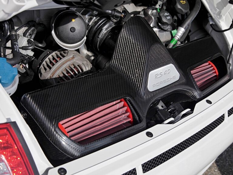 Układ dolotowy Porsche 911 GT3 RS 4.0 charakteryzuje się krótkim kolektorem o dużym przekroju i stożkowej geometrii oraz specjalną obudową filtra powietrza wykonaną z wyjątkowo lekkiego włókna węglowego. Filtr powietrza pochodzi z wyścigowego modelu 911 GT3 R Hybrid i jest zupełnie nowym opracowaniem z ponad dziesięcioprocentowym zmniejszeniem oporu dolotu. Osiąga się to dzięki dużym podwójnym wlotom, aerodynamicznemu wypływowi do czujnika masy powietrza oraz zastosowaniu dwóch wkładów filtracyjnych pochodzących ze świata motorsportu. Te lekko stożkowe wkłady filtracyjne mają dużą powierzchnię filtra i cienki papier filtracyjny, co zapewnia mały opór przepływu powietrza.