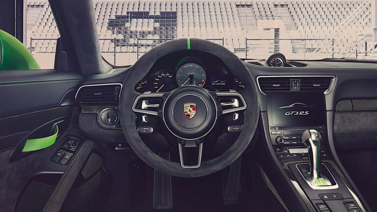 Podobnie jak w przypadku wszystkich aktualnych sportowych samochodów GT, pakiet Clubsport jest również dostępny dla Porsche 911 GT3 RS bez dodatkowych kosztów. Pakiet obejmuje belkę ochronną, ręczny gaśnicę, przygotowanie do wyłącznika akumulatora oraz sześciopunktowy pas bezpieczeństwa dla sportowych wrażeń z jazdy.