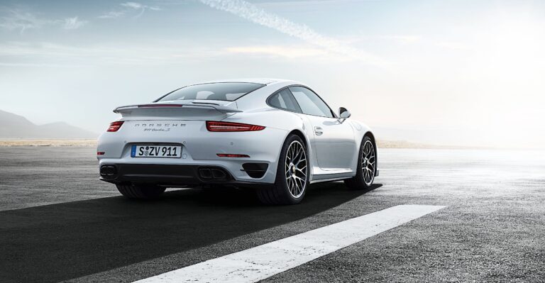 Wersja Turbo była uznawana za flagowy model 911 od momentu jej wprowadzenia w 1974 roku. Z biegiem lat powstawały szybsze wersje 911, ale Turbo pozostało najlepszym kompromisem między sportem a luksusem. Zaczęło jako prawdziwy, hardcore’owy samochód sportowy, ale zakończyło jako lepsze GT. Wersja Turbo S miała na celu przechylenie równowagi na korzyść sportowych osiągów. Z przodu Turbo S wyróżniały się standardowe reflektory LED oraz zintegrowane kierunkowskazy w zestawie świateł do jazdy dziennej.