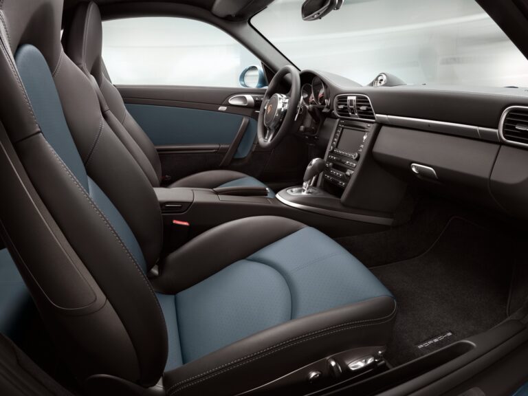 Gama skórzanej tapicerki, która jest standardem w nowym Porsche 911 Turbo S, jest dostępna w dwóch kombinacjach kolorystycznych: Czarno/Kremowym oraz Czarno/Tytanowym Niebieskim, oba z czarnym jako kolorem bazowym.