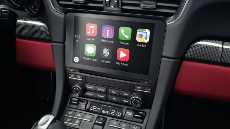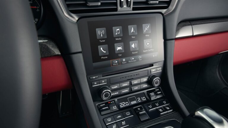 Jak w wszystkich wariantach 911 z 2017 roku, nowo opracowany system infotainment, PCM z nawigacją, jest standardem. System ten dysponuje 7-calowym monitorem wielodotykowym z wysokiej jakości szklaną powierzchnią, który jest doskonale zintegrowany z konsolą centralną i oferuje liczne nowe i rozszerzone funkcje łączności dzięki standardowemu modułowi Connect Plus. Nawigacja ma także dostęp do najnowszych informacji o ruchu drogowym w czasie rzeczywistym (Google® StreetView). Trasy i miejsca docelowe mogą być wizualizowane za pomocą zdjęć 360-stopniowych i zdjęć satelitarnych (Google® Earth). Dodatkowo, system może teraz przetwarzać wpisy ręczne. Ponadto, kompatybilne telefony komórkowe i smartfony mogą być teraz integrowane szybciej, łatwiej i kompleksowo niż dotychczas przez Wi-Fi, Bluetooth lub kabel. Wybrane funkcje pojazdu mogą być teraz również kontrolowane zdalnie. Jak w poprzednich modelach, 555-watowy system dźwiękowy Bose z 12 głośnikami, aktywnym subwooferem i głośnikiem centralnym jest oferowany jako standard; system Burmester o mocy 821 watów z 12 głośnikami i 300-watowym aktywnym subwooferem można zamówić jako opcję.