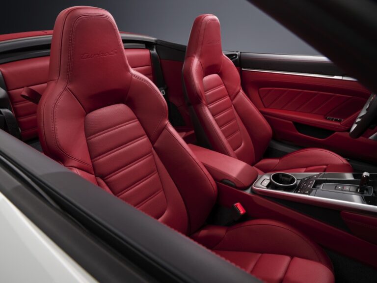 Wnętrze ma wysoką jakość i sportowe wykończenie. Lista standardowego wyposażenia obejmuje skórzane wnętrze oraz wykończenie z włókna węglowego w połączeniu z akcentami w kolorze Light Silver. Nowo zaprojektowane wnętrze w dwóch kolorach będzie dostępne od Porsche Exclusive Manufaktur jako opcja. Charakteryzuje się skoordynowaną grą kolorów, materiałów i indywidualnymi ulepszeniami. Fotele sportowe z możliwością regulacji w 18 kierunkach mają przeszycia, które nawiązują do pierwszego modelu 911 Turbo (typ 930). Wysokiej jakości elementy graficzne i logo w zestawie wskaźników dopełniają charakterystyczne cechy Turbo S. Środkowy ekran PCM ma teraz 10,9 cala i można go obsługiwać szybko i bez rozpraszania, dzięki nowemu układowi. Inne funkcje dostępne od producenta to sportowa kierownica GT, pakiet Sport Chrono z nowo zintegrowaną aplikacją Porsche Track Precision oraz system dźwięku przestrzennego BOSE®.