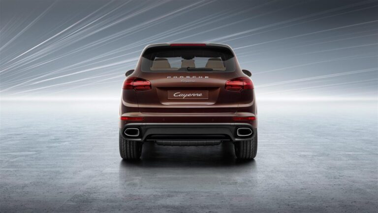 Tył nowego Cayenne został szczególnie wyraźnie zmodyfikowany. Tylne światła mają teraz płaską i precyzyjną konstrukcję. Podobnie jak LED-owe światła dzienne z przodu, światła hamowania mają czteroczęściowy design. Wcięcia na tablice rejestracyjne, listwy i oświetlenie są jeszcze elegancko zintegrowane w pokrywie bagażnika. Co więcej, nowa pokrywa bagażnika przyjmuje kształt tylnych świateł i kontynuuje go przez precyzyjną poziomą krawędź refrakcyjną światła. To podkreśla szerokość pojazdu i nadaje mu bardziej mocny wygląd na drodze. Nowy design końcówek wydechowych, które są zintegrowane w dolnym tylnej panelu, również się do tego przyczynia. Wszystkie modele Cayenne S mają teraz także podwójną konstrukcję rur wydechowych. Spojler dachowy nie ma już stopnia, co oznacza, że kontynuuje podstawową linię dachu jeszcze bardziej konsekwentnie i ma bardziej zwartą aparycję.
