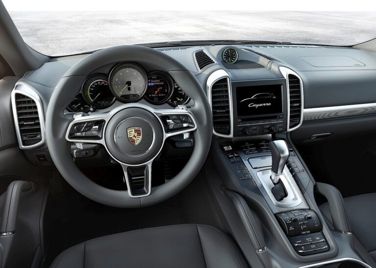 Wnętrze nawiązywało do modelu 911 dzięki pięciu wskaźnikom na desce rozdzielczej oraz centralnie umieszczonemu obrotomierzowi. Nowe, wysokie i wąskie wloty powietrza inspirowane były sedanem Panamera, natomiast przyciski systemu PTM na konsoli środkowej były zaktualizowaną wersją tych zastosowanych w pierwszej generacji Cayenne.