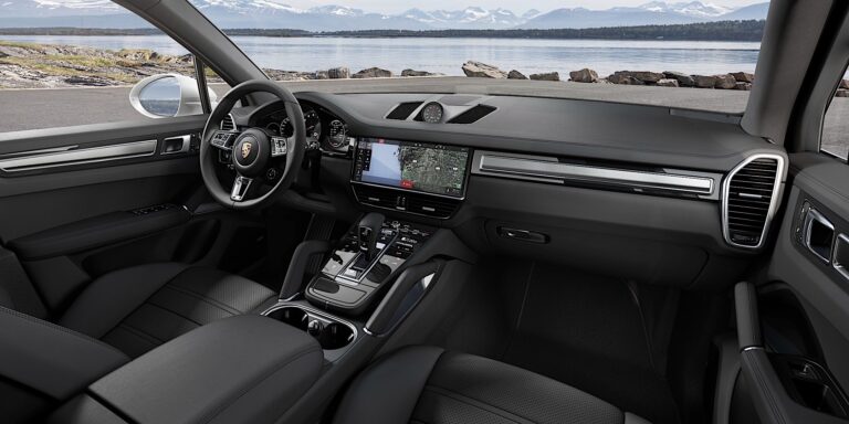 Dzięki ekskluzywnemu przodowi oraz LED-owym reflektorom głównym systemu Porsche Dynamic Light System (PDLS), Porsche Cayenne Turbo prezentuje się zarówno dominująco, jak i niezależnie. W nocy nowe Turbo wyróżnia się na tle innych modeli Cayenne dzięki podwójnym modułom świateł przednich. Profil boczny charakteryzuje się standardowymi 21-calowymi kołami Turbo, specjalnie zarezerwowanymi dla najwyższego modelu, umieszczonymi w poszerzonych nadkolach z pomalowanymi listwami. Podwójne rury wydechowe, specyficzne dla modelu Turbo, są kluczowymi elementami rozpoznawczymi z tyłu. Obramowania drzwi i tylny zderzak są pomalowane w kolorze nadwozia. Całkowicie nowoczesne wnętrze odzwierciedla zwiększony zakres Cayenne Turbo: więcej sportowości i więcej komfortu jednocześnie. Praktycznie wszystkie funkcje pojazdu w pełni zintegrowanego SUV-a można wyświetlać i obsługiwać za pomocą wysokiej rozdzielczości oraz ekranu dotykowego systemu Porsche Advanced Cockpit. Wśród nich znajduje się na przykład standardowy system dźwiękowy BOSE® Surround o mocy 710 watów. Kierowcy i pasażerowie doświadczają tego najwyższego modelu w sportowych fotelach z 18-stopniową regulacją. Zintegrowane zagłówki to nowa cecha, która również przypomina o modelu 911. Wszystkie fotele oraz wielofunkcyjny sportowy układ kierowniczy w ekskluzywnym wzornictwie Turbo są standardowo podgrzewane.