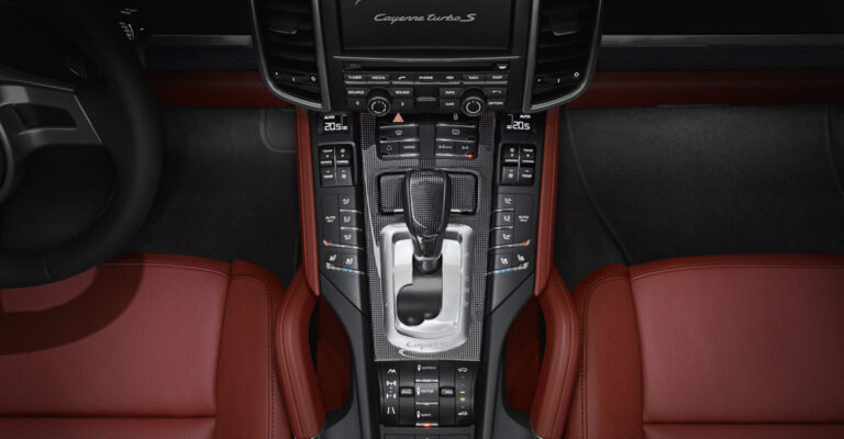 Projektanci Porsche stworzyli także dwu-tonowe wnętrza skórzane w nowych kolorach i rozkładach kolorystycznych specjalnie dla nowego Porsche Cayenne Turbo S. Te elementy wnętrza dostępne są w kombinacji czarna/czerwona carrera oraz czarna/beż luxor. Dwu-tonowe wnętrza skórzane, ekskluzywne dla nowego topowego modelu, są dodatkowo wysmakowane dzięki dopasowanemu dekoracyjnemu przeszyciu w kontrastowych kolorach czerwień carrera i beż luxor. Pakiet wykończenia z włókna węglowego uzupełnia elementy skórzane i podkreśla wysoką jakość pojazdów i materiałów.