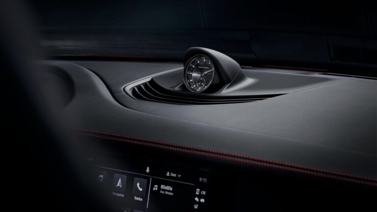 Panoramiczny dach z Sunshine Control jest dostępny jako nowy opcjonalny dodatek dla Taycan GTS. Elektrycznie przełączalna folia ciekłokrystaliczna może zmieniać dach z przezroczystego na matowy. Chroni to pasażerów przed rażącym światłem, nie przyciemniając wnętrza.