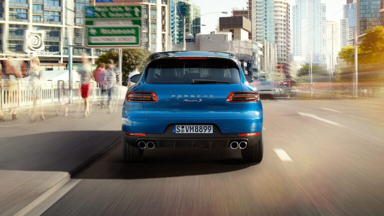 Tylne światła Macana to kolejny uderzający element, charakteryzujący się niezwykle zwartym, trójwymiarowym designem i technologią LED – kolejnym odniesieniem do modelu 918 Spyder. We wszystkich modelach, tylny dyfuzor z obu stron otoczony jest podwójnymi końcówkami wydechu – okrągłymi w Macanie S i Macanie S Diesel oraz kwadratowymi w Turbo. Wszystkie modele dostępne są z sportowymi końcówkami wydechu wykonanymi ze stali nierdzewnej w chromowanej wersji jako opcja.