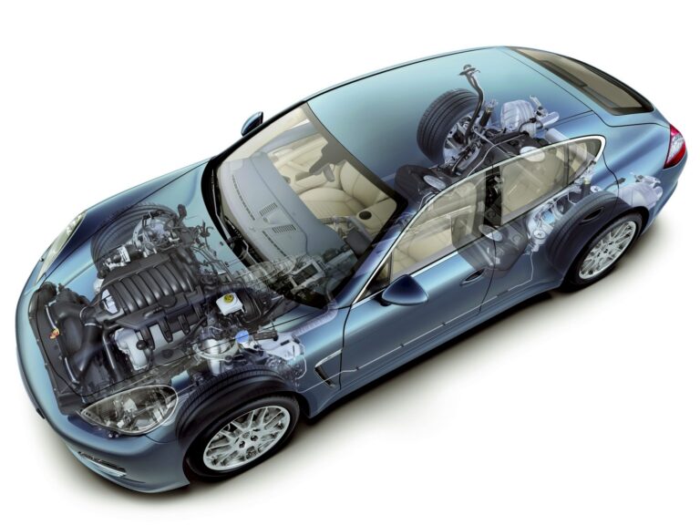 Oferując tak pełne pokrycie, podwozie samochodu kieruje przepływające powietrze dokładnie do tych punktów, w których konkretne komponenty Panamery potrzebują dodatkowego chłodzenia. Na przykład, wloty na osiach tylnych zapobiegają przegrzaniu dyferencjału, zapewniając mu odpowiedni poziom chłodzenia i efektywności przez cały czas. Tylni dyfuzor z kolei, razem z tylnym spoilerem, służy do dalszej redukcji sił nośnych z tyłu pojazdu.