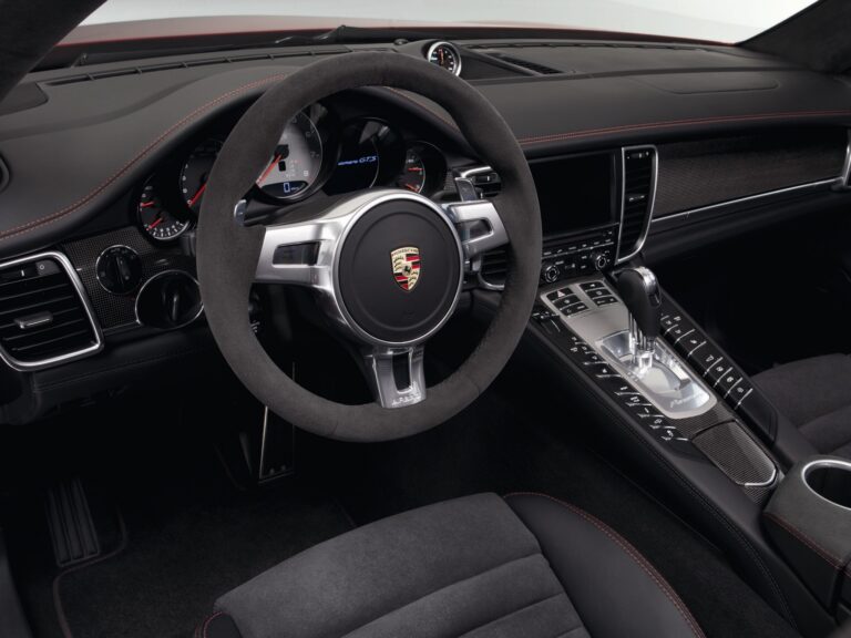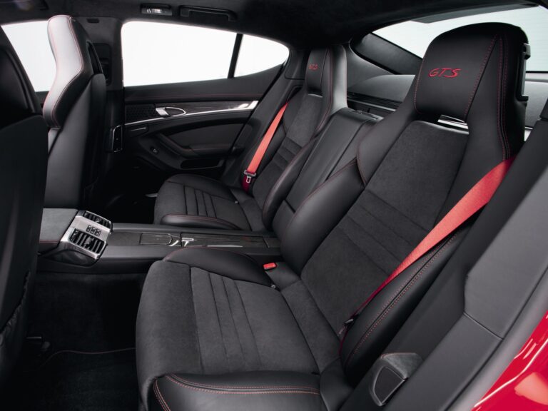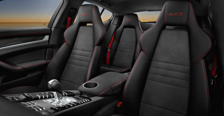 Sportowa osobowość Panamery wyraża się w całym wnętrzu, gdzie kierowca i pasażerowie siedzą w atmosferze z skóry i Alcantary w wyborze pięciu kolorów wnętrza. Środkowe panele standardowo dostępnych adaptacyjnych sportowych foteli z 18-stopniową regulacją, górne części podłokietników drzwi oraz podłokietnika centralnej konsoli i podsufitki są wykonane z Alcantary. Sportowe koło kierownicy z łopatkami do zmiany biegów i 12-godzinnymi oznaczeniami na obręczy koła kierownicy łączy dynamiczny wygląd i sportową funkcjonalność. Można je również okryć czarną Alcantarą, jeśli zajdzie taka potrzeba. Aby zapewnić wyraźne rozróżnienie, przednie stalowe osłony progowe są ozdobione napisem „Panamera GTS”. Napisy „GTS” można również spotkać w zestawie wskaźników i na haftowanych zagłówkach, co czyni purystyczne Porsche Panamera GTS po prostu nie do pomylenia.