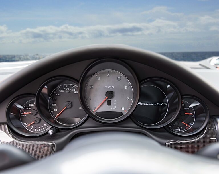 Zwinność Porsche Panamera GTS jest widoczna w każdym zakręcie. Wyświetlacz przyspieszenia w kierunku bocznym i podłużnym sprawia, że jest to widoczne również dla kierowcy. Wyświetlacz w prawej rurze zestawu wskaźników i opcjonalny system Porsche Communication Management (PCM) informują kierowcę o chwilowym przyspieszeniu, odzwierciedlając potencjał wysokich prędkości w zakrętach oraz osiągi jazdy Panamera GTS.