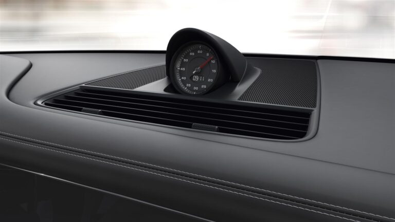 Z niskiej pozycji siedzącej, typowej dla samochodów sportowych, kierowcy widzą nie tylko fascynujący krajobraz przedniej części samochodu, skrzydeł i powerdome, ale także dwa 7-calowe wyświetlacze, umieszczone bezpośrednio w linii wzroku kierowcy dla idealnej ergonomii. Pośrodku tych dwóch wyświetlaczy znajduje się tachometr, który nadal jest analogowym instrumentem. Tymczasem konsola zmiany biegów pomiędzy kierowcą a pasażerem z przodu jest dominowana przez 12.3-calowy ekran dotykowy nowej generacji systemu Porsche Communication Management (PCM). Kierowca i pasażer z przodu mogą konfigurować ten wyświetlacz indywidualnie. Oczywiście jest zintegrowany z PCM: Funkcje takie jak nawigacja online, funkcje online Porsche Connect, integracja smartfona przez Apple Car Play oraz nowy system sterowania głosowego, który reaguje na naturalny język. Obszar PCM – z wyświetlaczem wysokiej jakości i wysokiej rozdzielczości – harmonijnie przechodzi w czarny koncept panelu konsoli środkowej z wybierakiem biegów z funkcją shift-by-wire dla PDK. Nowy panel sterujący z przyciskami dotykowymi na konsoli środkowej umożliwia intuicyjne sterowanie różnymi funkcjami. Nawet żaluzje centralnego wentylatora są elektrycznie regulowane przez dotykowe suwaki. Pasażerowie z tyłu mogą kontrolować funkcje klimatyzacji i infotainment za pomocą opcjonalnego systemu automatycznej klimatyzacji z czterema strefami.