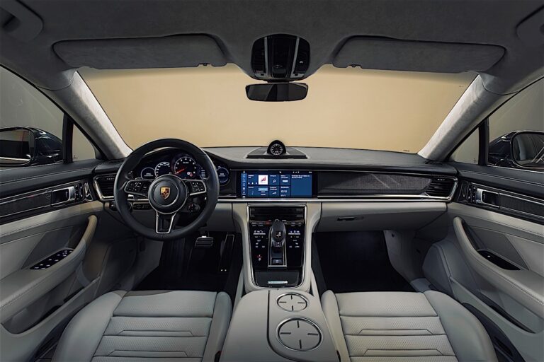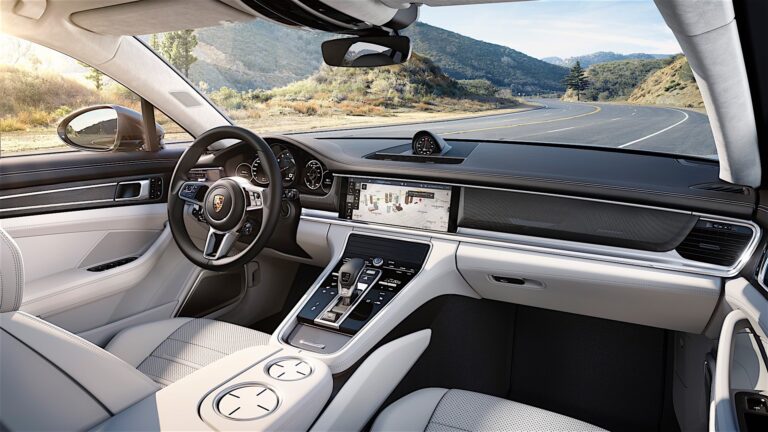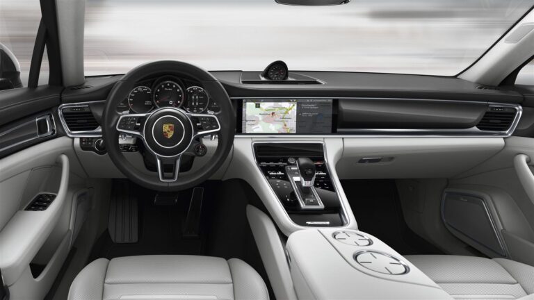 Typowe wnętrze Porsche zostało zinterpretowane na nowo w nowej Panamerze. Powierzchnie paneli w kolorze czarnym i interaktywne wyświetlacze łączą przejrzysty i intuicyjny interfejs użytkownika, podobny do smartfonów i tabletów, z praktycznymi wymaganiami dotyczącymi obsługi samochodu. Klasyczne twarde przyciski i tradycyjne instrumenty zostały znacznie ograniczone. Zostały one zastąpione panelami dotykowymi oraz indywidualnie konfigurowalnymi wyświetlaczami, które zajmują centralne miejsce w nowym Porsche Advanced Cockpit – przynosząc ogromne korzyści zarówno dla kierowcy, jak i pasażerów z przodu oraz z tyłu. Mimo znacznie rozszerzonego zakresu systemów komunikacyjnych, wygody i asysty, różne funkcje można teraz używać i obsługiwać w sposób bardziej przejrzysty i intuicyjny. Porsche Advanced Cockpit przekształca świat analogowy w cyfrową rzeczywistość mobilności, zachowując miejsce dla pasji. Tachometr, umieszczony centralnie w zestawie wskaźników, jest hołdem dla Porsche 356 A z 1955 roku.