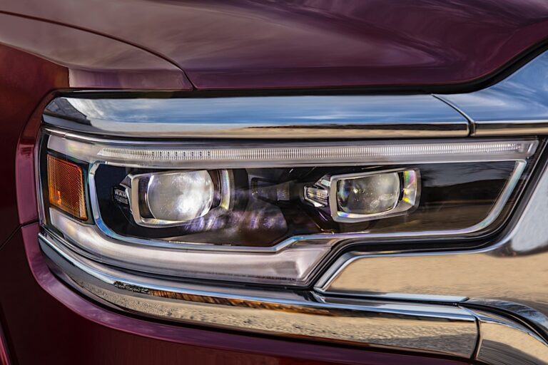 Dostępne są trzy warianty lamp przednich: halogenowe, pełne LED oraz pełne LED z systemem adaptacyjnego oświetlenia przedniego (AFS). Nad lampami znajduje się nowa podniesiona aluminiowa maska, która podkreśla wielkość Ram. Wyższa maska lepiej kieruje powietrze z dala od obszaru wycieraczek – poprawiając ogólną aerodynamikę i redukując hałas wiatru. Nowy emblemat znajduje się w połączeniu z tłoczeniem na boku pokrywy maski.