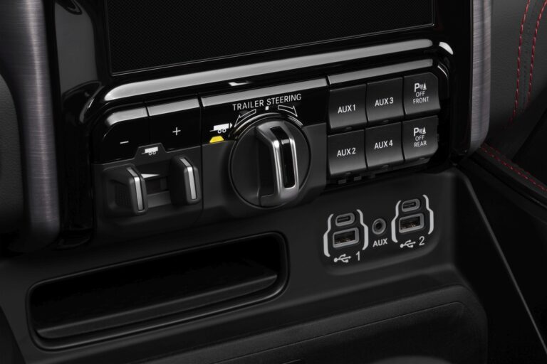Ekran dotykowy może pomieścić jedną aplikację, taką jak mapa nawigacyjna, na całym 12-calowym ekranie lub może być podzielony na pół, obsługując jednocześnie dwie różne aplikacje. Poniżej ekranu dotykowego znajduje się bank przełączników wielofunkcyjnych oraz opcjonalna kontrola kierowania wstecznego przyczepy, co daje fizyczną kontrolę nad konkretne funkcje. Redundantne elementy sterujące HVAC znajdują się po obu stronach wyświetlacza.