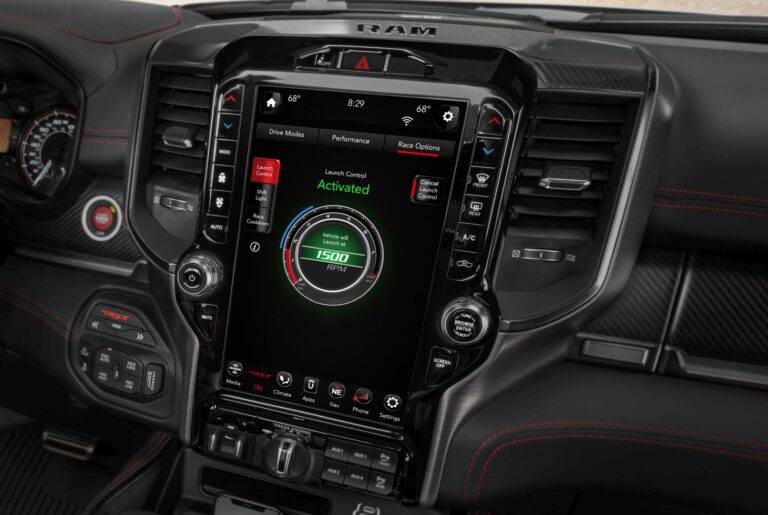 Launch Control jest standardem w 2021 Ram TRX i zarządza poślizgiem opon podczas startu pojazdu, zapewniając kierowcy konsekwentne przyspieszenie w linii prostej. Czujniki prędkości kół obserwują szkodliwe dla układu napędowego skoki kół przy starcie i, w ciągu milisekund, przekazują informacje do modułu sterowania układu napędowego, aby dostosować moment obrotowy silnika, uzyskując pełną przyczepność.