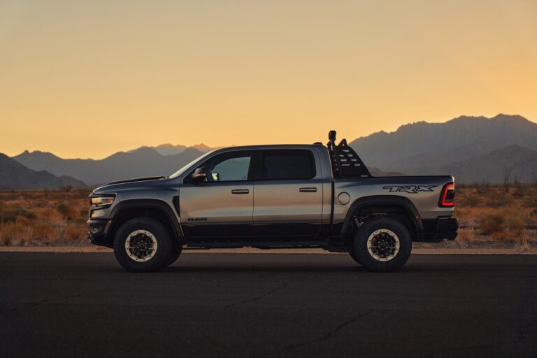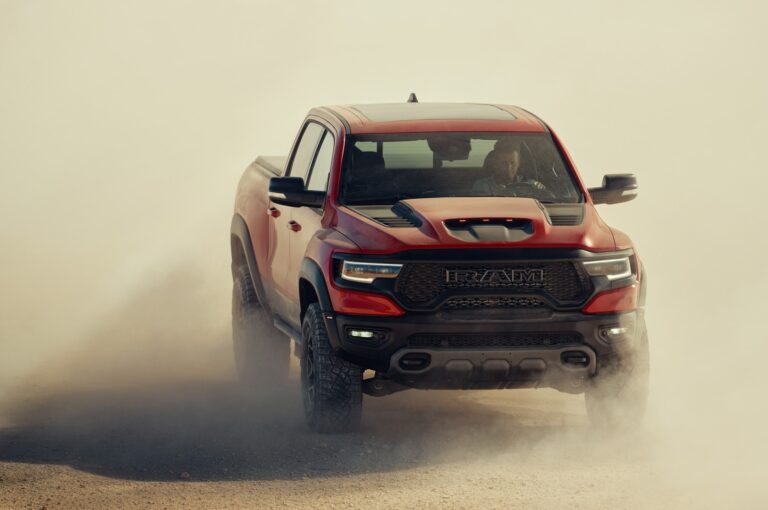 2021 Ram TRX oferuje możliwość pokonywania wody do 32 cali, holowania do 8100 funtów oraz maksymalną ładowność 1310 funtów.