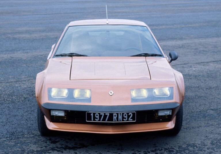 Podczas gdy model z 1971 roku miał system sześciu reflektorów, przypominający Citroena SM Maserati, wersja z 1977 roku otrzymała bardziej formalny układ z czterema reflektorami, zgrupowanymi parami i przykrytymi przezroczystym szkłem. Pomiędzy nimi, producent umieścił nachyloną płytkę z logo Renault. Na dolnej części samochodu, zespół projektowy umieścił żaluzjowy grill z parą kierunkowskazów i świateł parkingowych po zewnętrznej stronie. Z profilu, do samochodu dodano trójkątne okno skierowane w dół. Równocześnie nachylona tylna szyba zasłaniała komorę silnikową.