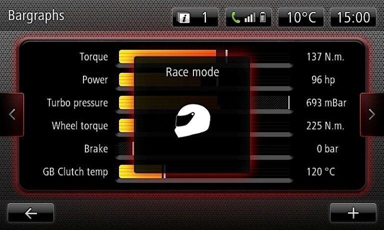 'Tryb Wyścigowy’: kontrola trakcji ASR jest odłączona, a zmiany biegów są całkowicie ręczne. Ten 'ekspercki’ tryb jest skuteczny, gdy przyczepność jest optymalna, ale również wymaga więcej umiejętności w prowadzeniu samochodu.