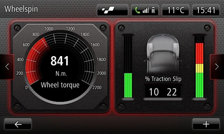 - Moment obrotowy, moc, temperatura wody, temperatura powietrza, ciśnienie doładowania, otwarcie zaworu przepustnicy, ciśnienie hamulca, kąt kierownicy, obroty silnika, temperatura oleju w skrzyni biegów, temperatura sprzęgieł EDC, moment obrotowy kół itd.
