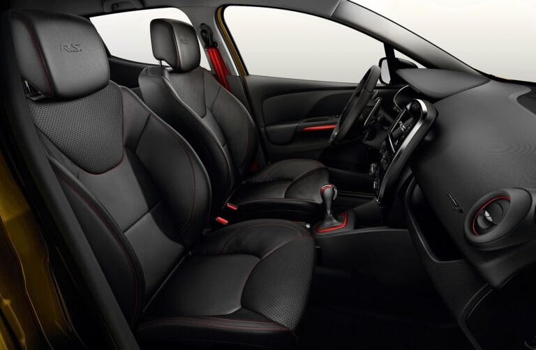 Tradycyjna siła modeli Renault Sport, kubełkowe fotele posiadają dodatkowe wsparcie boczne, aby zapewnić wysoki poziom komfortu siedzenia i stabilności, których oczekiwano od Clio RS. Mogą być również tapicerowane czarną skórą z widocznymi czerwonymi szwami.