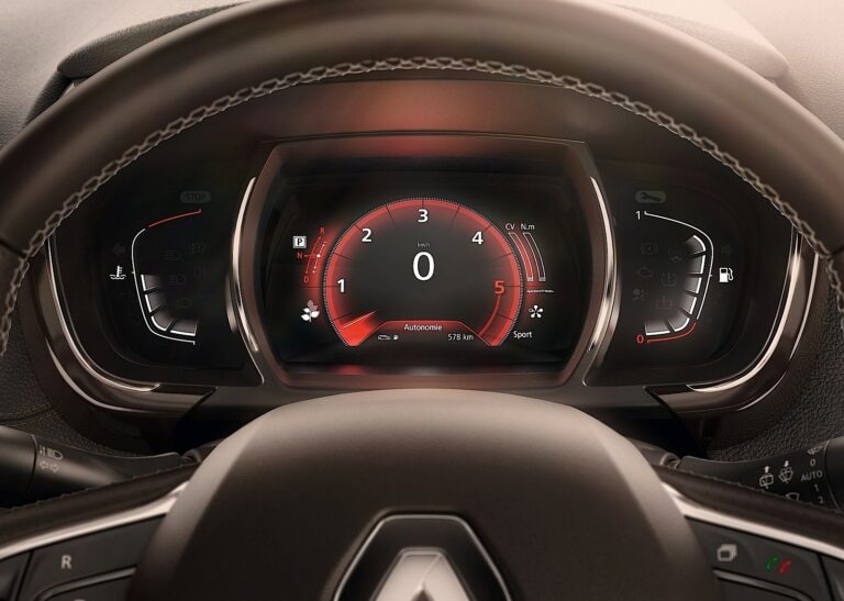 Centralnym elementem innowacyjnego wnętrza wersji wyposażonej w skrzynię EDC jest unosząca się konsola, która doskonale współgra z projektem kabiny nowego Renault Espace. Celowo prosta i nieprzeładowana, mieści wszystkie niezbędne elementy sterujące: wielofunkcyjny pokrętło, klawisz skrótu systemu Multi-Sense®, przycisk wspomagającego hamulca postojowego oraz przełącznik tempomatu/ogranicznika prędkości. Konsolę podkreślają światła kierunkowe. Wnętrze zyskuje nowoczesny charakter dzięki wyborowi czterech dekorów wykończeniowych oraz doskonałej integracji dużego, 8.7-calowego wyświetlacza w pionie dla systemu multimedialnego R-Link 2®.