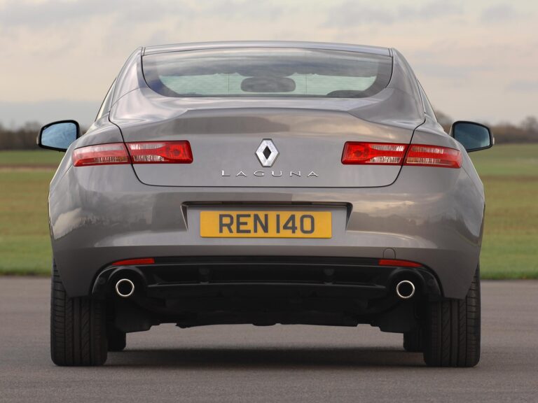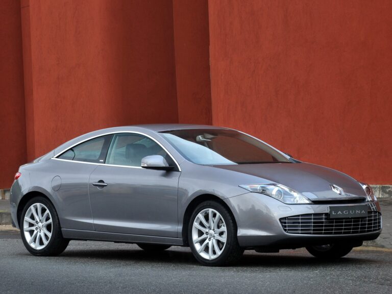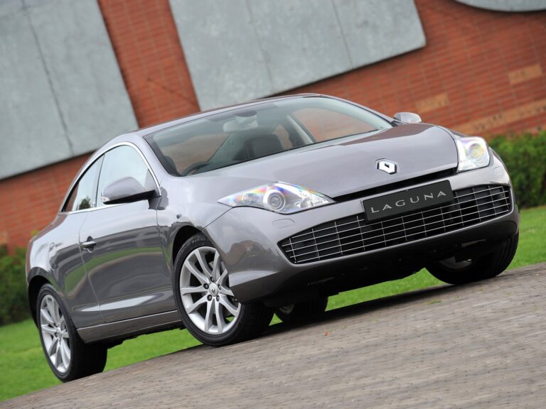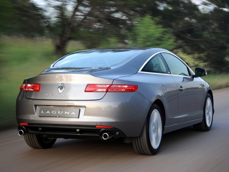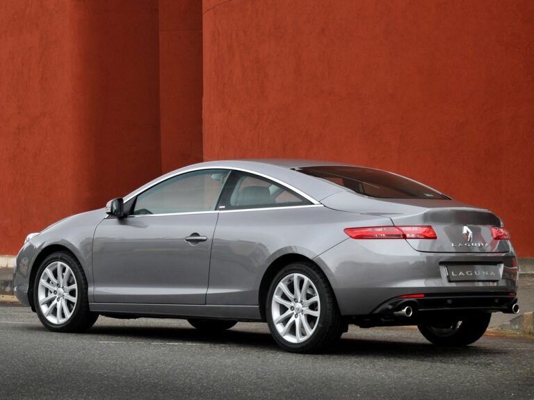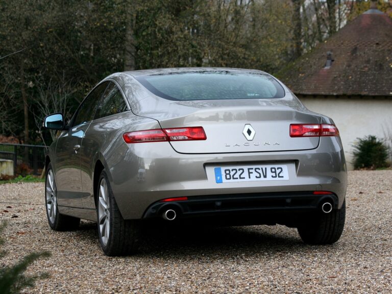 Płynne linie eleganckiego, minimalistycznego designu Renault Laguna Coupe wyrażają połączenie ponadczasowego piękna i obietnicy czystej przyjemności z jazdy. Nie można pomylić dziedzictwa, które odziedziczyło po samochodzie pokazowym zaprezentowanym na Targach Motoryzacyjnych we Frankfurcie we wrześniu 2007 roku oraz po gamie Renault Laguna, której ma przewodzić. Z długością 4,64 metra i szerokością 1,83 metra, jego proporcje są dobrze wyważone, a linia charakterystyczna, która wychodzi z grilla, wznosi się dynamicznie wzdłuż boków, niczym fala powietrza, elegancko podkreślając design przednich błotników, zanim przejdzie do tyłu, podkreślając jego muskularne kształty. Przezroczysta część okien została wyeksponowana w najlepszy sposób dzięki czystemu, płynnemu łukowi. Siedząc na 17- lub 18-calowych felgach aluminiowych, postura Renault Laguna Coupe emanuje dynamizmem i mocą, dzięki wymiarowi rozstawu osi wynoszącemu 2,69 m i wysokości 1,40 m. To odczucie potęgują wyraźne linie zagięcia długiej maski i nowe wersje reflektorów. Tył z kolei charakteryzuje się bardzo krótkim zwisem i szerokimi, smukłymi światłami, które nadają Renault Laguna Coupe jasny, charakterystyczny sygnaturę świetlną, sugerującą wyrafinowanie i moc, szczególnie w nocy, gdy kierunkowskazy tworzą aurę, która podkreśla kontury cienkich czerwonych diod LED.