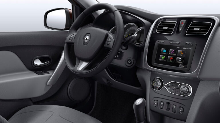 Jednymi z najważniejszych ulepszeń były zmiany we wnętrzu samochodu, które pomieściło pięciu dorosłych pasażerów oraz tylną kanapę dzieloną w proporcji 60/40. Niemniej jednak, przednie fotele pozostały płaskie i pokryte tanim materiałem. Renault zdecydowało się na nowy design deski rozdzielczej z organicznymi kształtami i srebrnymi wykończeniami. Jak w przypadku rumuńskiego odpowiednika, francuska marka oferowała opcję systemu multimedialnego z ekranem dotykowym umiejscowionym na centralnej konsoli. Mimo że nie był on zamontowany w najdogodniejszym miejscu, stanowił poprawę w porównaniu do poprzedniej generacji Logana.