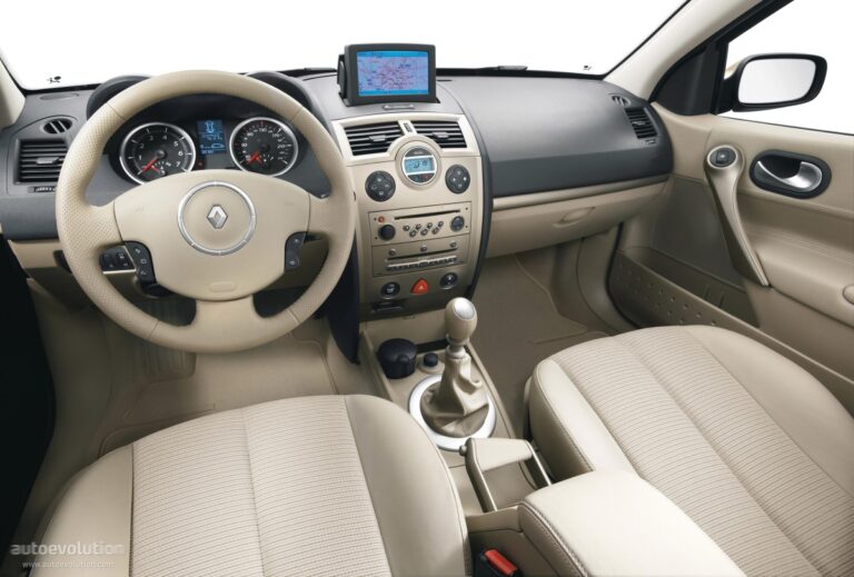 Wnętrze samochodu zostało wyposażone w nowy system nawigacji zaprojektowany we współpracy z TomTom. Jego wysuwany ekran na górze deski rozdzielczej był wyjątkowy na rynku, przynajmniej w segmencie samochodów budżetowych. W niższych wersjach wyposażenia Megane oferował standardową klimatyzację oraz przyzwoite radio CD. Tylni pasażerowie siedzieli na dzielonej kanapie.