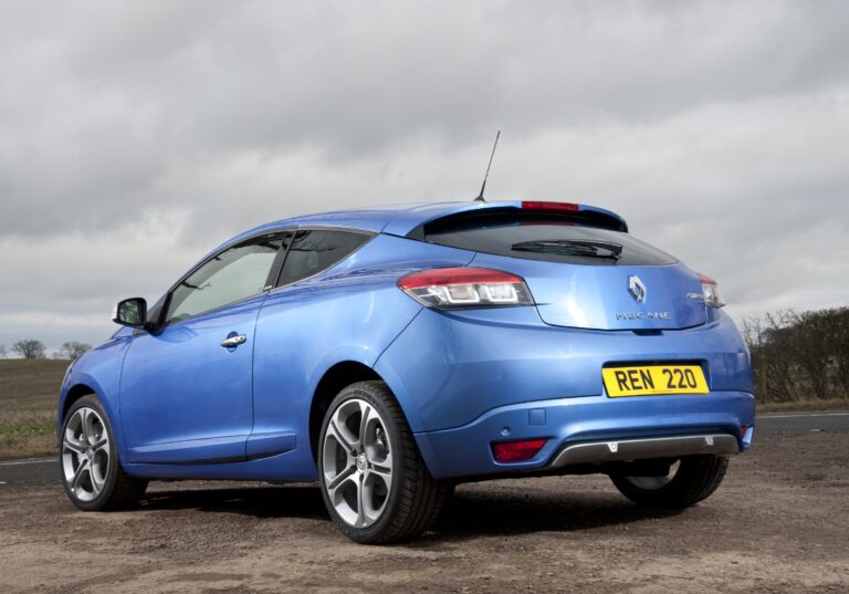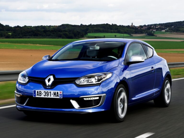 Renault Megane Coupe GT z 2013 roku otrzymał specjalny kolor Malta Blue, który był jedynym dostępnym. Przedni zderzak został przeprojektowany, aby nadać mu sportowy wygląd. Dolny grill oraz białe obramowania świateł są charakterystyczne dla modeli GT i GT-Line, podobnie jak czarne maski reflektorów.