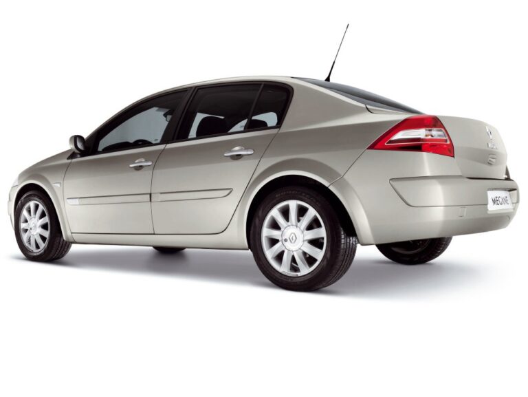 Druga generacja Megane wykazała się wyraźnym zrozumieniem nowoczesnych trendów w designie. Z przodu, kątowe reflektory były połączone z czarnym grillem w szerokiej, V-kształtnej linii. W centralnej części, romboidalne logo Renault harmonizowało z liniami samochodu. Dzięki wyraźnym krawędziom na masce i nachylonej przedniej szybie, Megane Sedan udało się osiągnąć umiar – nie był ani zbyt odważny, ani zbyt prosty. Szeroki słupek C oraz zaokrąglona tylna szyba tworzyły płynną linię w kierunku płaskiej i prostej klapy bagażnika z tyłu. Tylne światła, umieszczone w rogach, były rozwiązaniem oszczędnym.