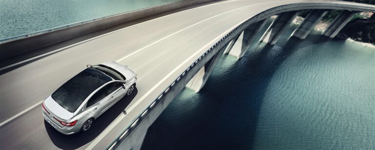 Nowy sedan o czterech drzwiach jest częścią odnowienia oferty Renault. Jego dynamiczny i prestiżowy styl odzwierciedlają rzeźbione powierzchnie, dobrze wyważone proporcje, przedni zderzak w stylu rodziny Renault oraz charakterystyczny podpis świetlny w kształcie litery C. Szklany dach łączący przednią szybę z tylnym oknem nadaje elegancki i estetyczny dwukolorowy wygląd.