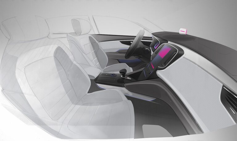 Obszary najbliższe pasażerom mają przyjemne, miękkie w dotyku wykończenie. Elementy znajdujące się dalej są celowo traktowane w „chłodniejszy” sposób pod względem kolorów i materiałów. Ten kontrast przyczynia się do wrażenia przestrzeni. Ostatecznie, połączenie szczególnych kolorów i różnych materiałów tworzy różne otoczenia wnętrza.