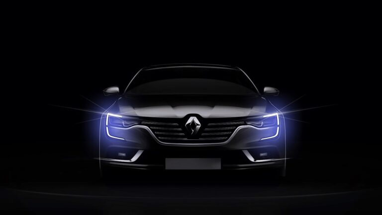 Talisman emanuje siłą i zaufaniem od przodu dzięki swojemu charakterystycznemu chromowanemu grille, na którym znajduje się pionowy logo marki w kształcie diamentu. Nowy wizualny podpis Renault kontynuuje przez C-kształtne światła dzienne Talisman, które sięgają aż do zderzaka. W zależności od wersji, Talisman może być wyposażony w 100% „czyste” reflektory LED.