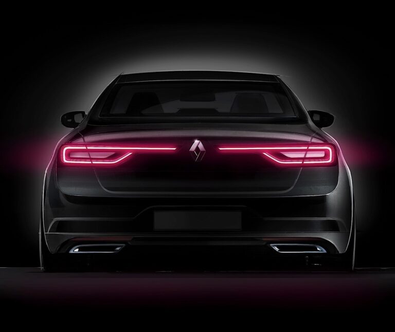 Niski, szeroki tył zawiera charakterystyczne zespoły tylnych świateł, które rozszerzają się do wewnątrz w kierunku linii środkowej bagażnika. Ich wydłużony kształt podkreśla stabilność samochodu, zwracając uwagę na logo Renault. Oświetlenie 3D zapewnia Talismanowi potężny wizualny znak rozpoznawczy. Te światła są zawsze włączone – nawet w ciągu dnia – aby jeszcze bardziej wzmocnić ich wizualny wpływ.