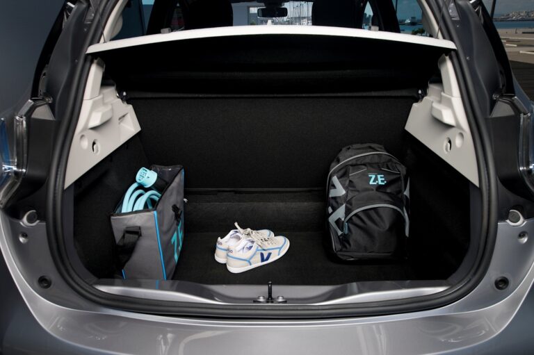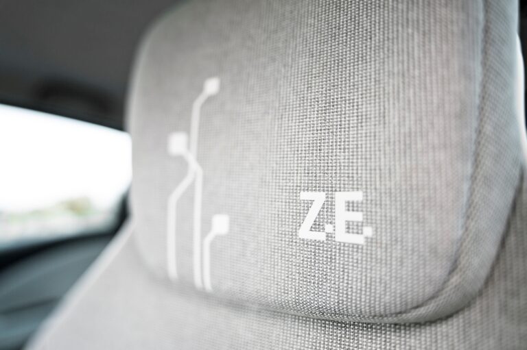 Fotele mają wbudowane zagłówki, z jasnym materiałowym pokryciem (w wersji Zen) zabezpieczonym ochroną przed plamami Teflon®. Tożsamość Renault ZOE jako pojazdu zeroemisyjnego zaznaczają inicjały Z.E. na gałce zmiany biegów i na zagłówku fotela kierowcy. Na podsufitce oraz desce rozdzielczej widnieje pictogram przypominający obwód drukowany.